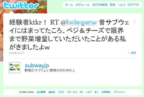 サブウェイ のスタッフがやってる Twitter がおもしろい 09年11月11日 エキサイトニュース